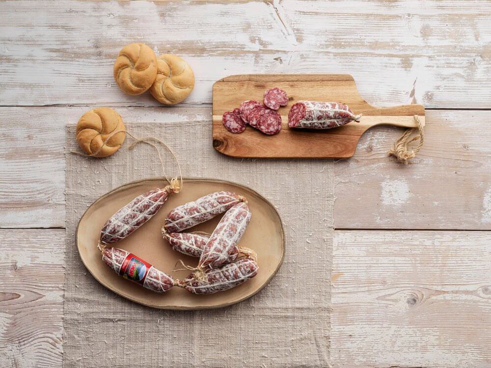 Den perfekta matchningen mellan praktiskt och smakfullt: Wolfino tillverkas efter charkuteriet i Sauris egna recept och med traditionsenlig rökning.